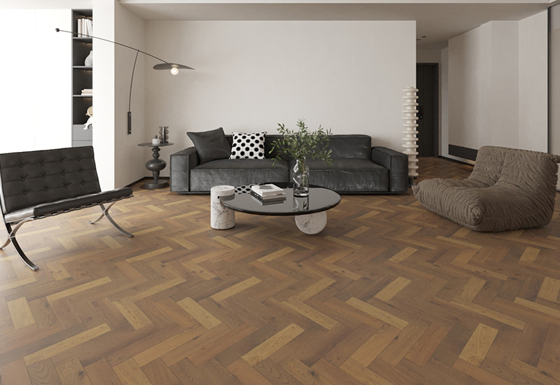 Drevené drevené podlahy z prémiového bieleho dubov vo východnej Európe, drevené drevené podlahy s rybím kosťou, ktorá je v tmavo Európe s rybím kosťou, má hlboký kefovaný povrch, ktorý zdôrazňuje bohatú textúru a zrno dreva. Tmavá údená povrchová úprava dáva drevu sofistikovaný, náladový tón, ktorý v akomkoľvek priestore vytvára odvážne, ale príjemnú atmosféru. Klasický vzor rybej kosti dodáva dynamickú vizuálnu príťažlivosť, vďaka čomu je táto podlaha dobrým výrokom pre obývacie izby, kancelárie a chodby. Vďaka stupňu CD ponúka veľkú trvanlivosť a stabilitu, ktorá v rezidenčných aj komerčných prostrediach stojí až po vysokú pešiu premávku. Príter UV oleju nielen zvyšuje prírodnú krásu dreva, ale tiež poskytuje ochranu pred opotrebením a zabezpečuje dlhodobý výkon. Úroveň lesku 10 ± 2 ° dodáva jemný, rafinovaný lesk, ktorý zdôrazňuje hlboké tóny dreva bez toho, aby boli príliš silné.